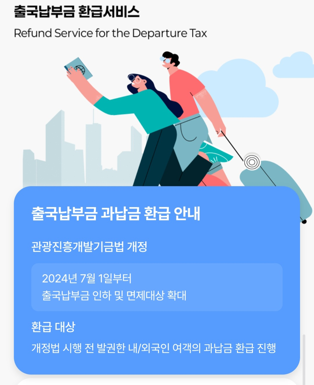 특히 국제질병퇴치기금 폐지와 출국세 인하가 동시에 적용되면서, 그 차액에 대한 환불이 이뤄지는 구조입니다.