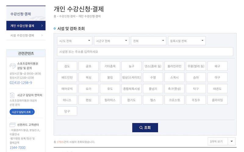 최종적으로 대상자로 선정이 되면 누리집을 통해 발급된 이용권을 확인할 수 있고, 이후 원하는 지역 내 등록된 스포츠 시설을 검색해 온라인으로 수강 신청과 결제를 진행할 수 있습니다.