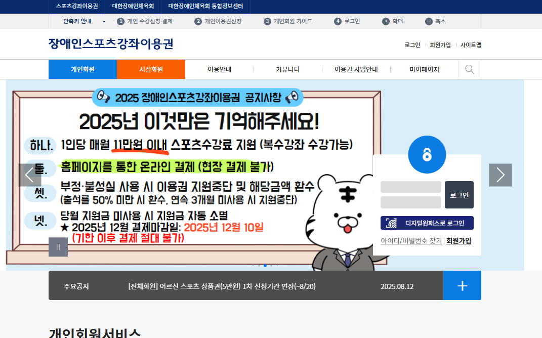 장애인 스포츠강좌 이용권 신청방법과 홈페이지 안내