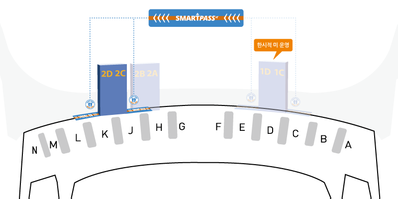 제1터미널에서는 2번, 3번, 4번, 5번 출국장, 제2터미널에서는 1C, 1D, 2C, 2D 출국장이 해당됩니다. 특히 2025년 7월부터 T1 2번 출국장은 스마트패스 전용 출국장으로 전환되어, 전통적인 여권 제시 절차 없이 얼굴 인식만으로 빠르게 통과할 수 있습니다.