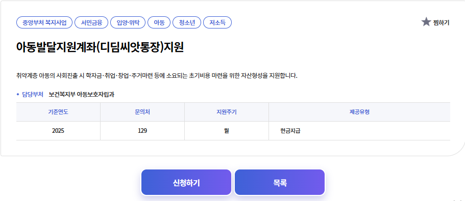 혹시 우리 아이가 신청 대상에 해당한다면 주저하지 마시고 꼭 신청하시길 권해드립니다. 꾸준히 적립한 작은 돈이 시간이 지나 큰 힘이 되어 아이의 학업, 취업, 주거 준비에 큰 도움이 될 것입니다. 디딤씨앗통장은 바로 아이의 내일을 위한 가장 확실한 준비라고 할 수 있습니다.